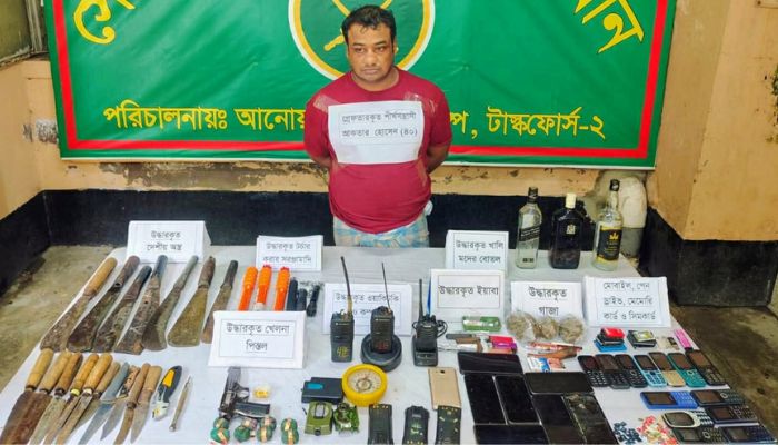 অভিযানে একটি নকল পিস্তল, ১৮টি দেশীয় অস্ত্র, ইয়াবা ও গাঁজা, গ্রেনেড সদৃশ বস্তু, সামরিক ওয়াকিটকি সেট, কম্পাস, ২১টি মোবাইল ফোন, ৯৫টি সিমকার্ড, পেনড্রাইভ, মেমোরি কার্ড, বিদেশি মদের বোতলসহ নির্যাতনের নানা সরঞ্জাম উদ্ধার করা হয়।