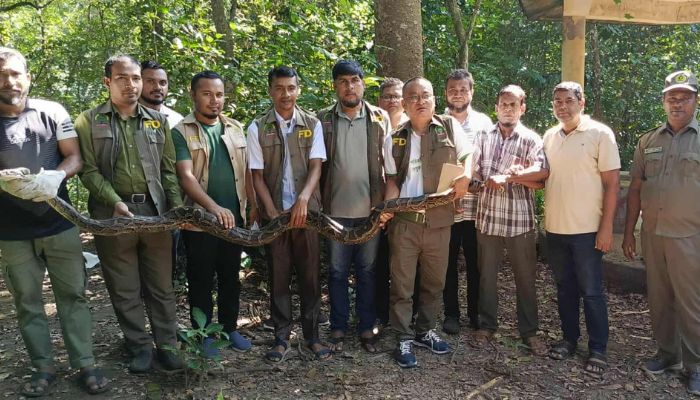 কাপ্তাইয়ে ১৫ কেজি ওজনের অজগর অবমুক্ত