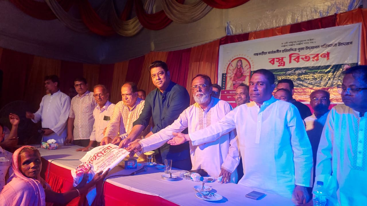 গাছবাড়ীয়া সার্বজনীন হরিমন্দির পূজা উদযাপন পরিষদের উদ্যোগে বস্ত্র বিতরণ