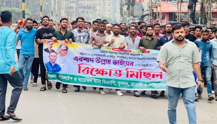 চাটগাঁর সংবাদ ডেস্ক: চট্টগ্রাম-৮ (বোয়ালখালী-চান্দগাঁও-বায়েজিদ) আসনের বিএনপির প্রার্থী ও নগর বিএনপির আহ্বায়ক এরশাদ উল্লাহ’র উপর গুলি চালানো ও সন্ত্রাসী হামলার প্রতিবাদে বিক্ষোভ মিছিল করেছে নেতাকর্মীরা।