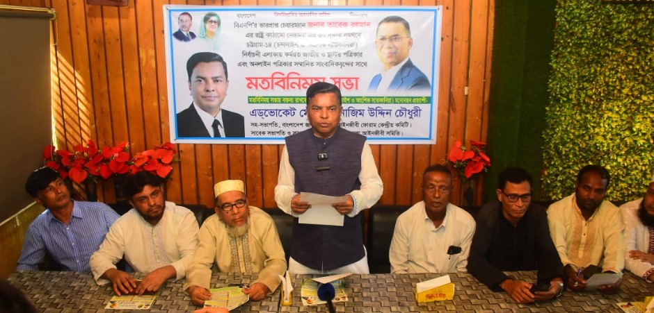 চন্দনাইশে সাংবাদিকদের সঙ্গে বিএনপির মনোনয়ন প্রত্যাশী অ্যাডভোকেট নাজিমউদ্দিনের মতবিনিময়