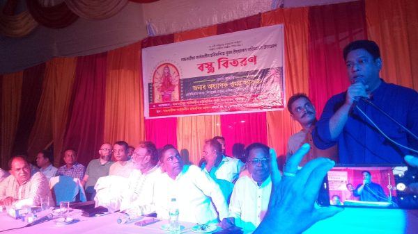 ২৯ সেপ্টেম্বর সোমবার বিকেলে চন্দনাইশ পৌরসভার গাছবাড়িয়া সার্বজনীন শ্রীশ্রী হরিমন্দির অঙ্গনে অরূপ রতন চক্রবর্তীর সভাপতিত্বে এবং চন্দনাইশ উপজেলা পূজা উদযাপন পরিষদের যুগ্ম আহবায়ক প্রকৌশলী ভবশংকর ধরের সঞ্চালনায় অনুষ্ঠিত বস্ত্র বিতরণ অনুষ্ঠানে প্রধান অতিথি ছিলেন লিবারেল ডেমোক্রেটিক পাটি (এলডিপি)’র প্রেসিডিয়াম সদস্য অধ্যাপক ওমর ফারুক সানি। এতে উপস্থিত ছিলেন দক্ষিণ জেলা পূজা উদযাপন পরিষদের সাধারণ সম্পাদক ও বরমা শম্ভু- লক্ষ্মী ট্রাস্টের চেয়ারম্যান রুবেল দেব, উপজেলা এলডিপির সভাপতি মোতাহের মিয়া, সাধারণ সম্পাদক আলহাজ্ব আকতার আলম,