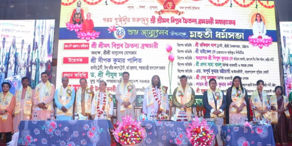 নিউজ ডেস্ক: মহান আধ্যাত্মিক সাধক, সর্বত্যাগী সন্ন্যাসী, মহাযোগী আচার্যপাদ পরমহংস পরিব্রাজকাচার্য শ্রী শ্রীমৎ স্বামী বাসুদেবানন্দ গিরি মহারাজ ও শ্রীমৎ স্বামী কৃষ্ণানন্দ গিরি মহারাজের আশীর্বাদপুষ্ট উত্তরসূরী শ্রীশ্রী বাসুদেব যোগাশ্রমের পরম্পরা অধ্যক্ষ পরম পূজনীয় শ্রীমৎ বিপ্লব চৈতন্য ব্রহ্মচারী মহারাজের ৫৪তম শুভ জন্মোৎসব ২০ ও ২১ নভেম্বর ২০২৫ যথাক্রমে বৃহস্পতি ও শুক্রবার হাটহাজারী উপজেলাধীন নন্দীরহাট নেহালপুর শ্রীশ্রী বাসুদেব যোগাশ্রমে বর্ণাঢ্য আয়োজনে পালিত হয়।