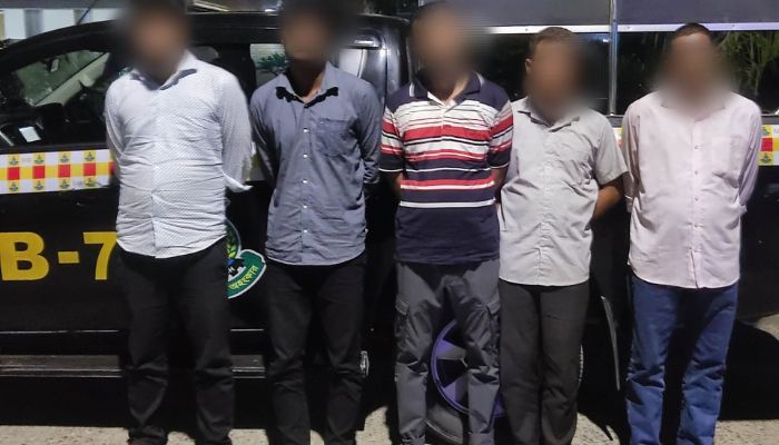 তল্লাশিকালে গাড়ি থেকে আটক করা হয় লক্ষীপুর জেলার লক্ষীপুর সদর থানার পাটোয়ারী বাড়ির আব্দুল মতিনের ছেলে মো. আব্দুল্লাহ আল মামুন (৪১), কুমিল্লা জেলার মুরাদনগর থানার রসুলপুর গ্রামের ফিরোজের ছেলে মো. মাঈন উদ্দিন (৩০), পটিয়া পৌরসভার হাবিবুর পাড়ার আবদুল হামিদের ছেলে মো. রাশেদুল আলম (৩৮), একই উপজেলার কাগজীপাড়া আল্লাই এলাকার সিদ্দিক আহমদের ছেলে মো. জসিম উদ্দিন (৪১) ও জামালপুর জেলার সরিষাবাড়ী থানার আবদুস সামাদ তরফদারের ছেলে মো. জুনায়েদ তানভীর তরফদারকে (২৯)।