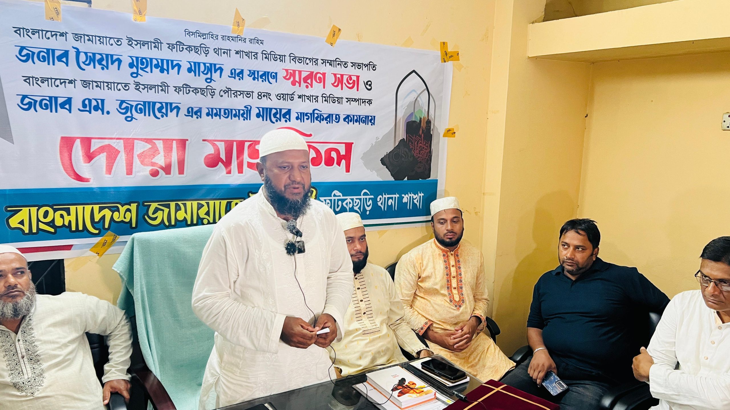 বাংলাদেশ জামায়াতে ইসলামী ফটিকছড়ি থানা শাখার মিডিয়া বিভাগের সম্মানিত সভাপতি, বিশিষ্ট সাংবাদিক ও শিক্ষাবিদ সৈয়দ মুহাম্মদ মাসুদের স্মরণে এক হৃদয়স্পর্শী স্মরণসভা ও দোয়া মাহফিল অনুষ্ঠিত হয়েছে।
