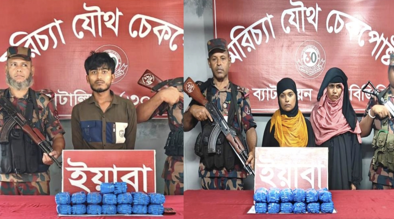 আবদুর রাজ্জাক, জেলা প্রতিনিধি, কক্সবাজার।। বর্ডার গার্ড বাংলাদেশ এর কক্সবাজার রিজিয়নের, রামু সেক্টরের অধীনস্থ, রামু ব্যাটালিয়ন (৩০ বিজিবি)’র অধিনস্থ মরিচ্যা যৌথ চেকপোষ্টের দুটি বিশেষ টহলদল রাবার ডেম ও গোয়ালিয়া এলাকায় পৃথক অভিযান চালিয়ে ৮০ হাজার ইয়াবা সহ ৩ মাদক কারবারি কে আটক করেছে । আটককৃতদের মধ্যে দুইজন মহিলা মাদক কারবারি রয়েছে। জানা যায়, শুক্রবার ২৫ জুলাই দুপুর ২ ঘটিকার সময় গোয়েন্দা তথ্যের ভিত্তিতে লেঃ কর্নেল কাজী মাহতাব উদ্দিন আহমেদ এর দিকনির্দেশনায় সহকারী পরিচালক মোঃ কবির হোসেন এর নেতৃত্বে রামু ব্যাটালিয়ন (৩০ বিজিবি) এর অধিনস্থ মরিচ্যা যৌথ চেকপোষ্টের একটি বিশেষ টহলদল কর্তৃক রাবার ডেম চেকপোষ্টে একটি সন্দেহজনক সিএনজি আটক করা । যাত্রী ইমরান (২২), পিতা- আব্দুর রহিম, গ্রাম- লেংগার বিল, ডাকঘর- মরিচ্যা, থানা- উখিয়া, জেলা- কক্সবাজারকে সন্দেহ করা হলে প্রাথমিক জিজ্ঞাসাবাদে সে অস্বীকার করে। পরবর্তীতে পুঙ্খানুপুঙ্খভাবে তল্লাশী করে তাঁর হাতে থাকা ব্যাগের ভিতর বিশেষভাবে লুকায়িত অবস্থায় *৯০,০০,০০০/- টাকা মূল্যের ৩০,০০০ পিস বার্মিজ ইয়াবা উদ্ধার করা হয়।অপরদিকে একই দিন রাত ৮ টা ৩০ মিনিটের সময় গোয়েন্দা তথ্যের ভিত্তিতে লেঃ কর্নেল কাজী মাহতাব উদ্দিন আহমেদ এর দিকনির্দেশনায় সহকারী পরিচালক মোঃ কবির হোসেন এর নেতৃত্বে রামু ব্যাটালিয়ন (৩০ বিজিবি) এর অধিনস্থ মরিচ্যা যৌথ চেকপোষ্টের একটি বিশেষ টহলদল কর্তৃক গোয়ালিয়া চেকপোষ্টে একটি সন্দেহজনক ইজিবাইক আটক করা হয়। যাত্রী (ক) তৈয়বা আক্তার (৩৯), স্বামী- মোকতার আহম্মদ, গ্রাম- তুলাতলী, ডাকঘর-গর্জনীয়া, থানা- নাইক্ষ্যংছড়ি, জেলা- বান্দরবান এবং (খ) এফডিএমএন দিলবার খাতুন (৩২), স্বামী- নুর আলম, গ্রাম- কুতুপালং রোহিঙ্গা ক্যাম্প, ক্যাম্প নং-০১, ব্লক এ-১, থানা- উখিয়া, জেলা- কক্সবাজারকে সন্দেহ করা হলে প্রাথমিক জিজ্ঞাসাবাদে তারা অস্বীকার করে। পরবর্তীতে পুঙ্খানুপুঙ্খভাবে তল্লাশী করে তাদের শরীরের সাথে বিশেষভাবে লুকায়িত অবস্থায় *১,৫০,০০,০০০/- টাকা মূল্যের ৫০০০০ পিস বার্মিজ ইয়াবা উদ্ধার করা হয়।