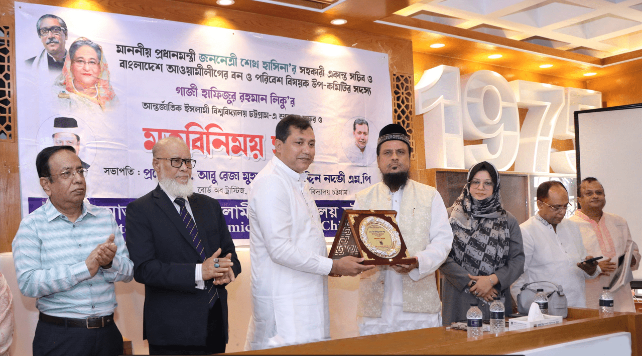 সংবর্ধিত অতিথির বক্তব্যে গাজী হাফিজুর রহমান লিকু বলেন, ‘আইআইইউসির সবুজ ক্যাম্পাস দেখে আমি মুগ্ধ ও অভিভূত। মাননীয় প্রধানমন্ত্রী জননেত্রী শেখ হাসিনার নির্দেশনায় সরকার এই বিশ্ববিদ্যালয়ের বোর্ড অব ট্রাস্টিজ এর চেয়ারম্যানের দায়িত্ব প্রফেসর ড. আবু রেজা নদভী এমপির হাতে দিয়েছেন। বিশ্ববিদ্যালয়ের বিশাল ক্যাম্পাস জুড়ে পিচঢালা রাস্তা, মনোরম সুন্দর মসজিদ, সুবিশাল লাইব্রেরী; নবগঠিত বোর্ড অব ট্রাস্টিজ এর চেয়ারম্যান প্রফেসর ড. আবু রেজা মুহাম্মদ নেজামুদ্দিন নদভী এমপির নেতৃত্বে প্রতিষ্ঠিত বঙ্গবন্ধু কর্ণার, বঙ্গবন্ধু কনফারেন্স হল ও বঙ্গবন্ধু রিসার্চ সেন্টার ফর ইন্টাররিলিজিয়াস ডায়ালগ এসব দেখলেই বোঝা যায়, এই বিশ্ববিদ্যালয়ে জ্ঞান চর্চার পাশাপাশি জাতির পিতা বঙ্গবন্ধু ও বাংলাদেশের ইতিহাস, আদর্শিক ও ধর্মীয় চর্চাও সমানতালে করা হয়। আমি আশা করছি বর্তমান বোর্ড অব ট্রাস্টিজ এর নেতৃত্বে এই বিশ্ববিদ্যালয়ের চলমান সফলতা ভবিষ্যতেও অব্যাহত থাকবে। আইআইইউসির রেজিস্ট্রার আ ফ ম আক্তারুজ্জামান কায়সারের সঞ্চালনায় অনুষ্ঠিত মতবিনিময় সভায় বিশেষ অতিথি ছিলেন আইআইইউসি বোর্ড অব ট্রাস্টিজ এর সদস্য ও ফিন্যান্স কমিটির চেয়ারম্যান প্রফেসর ড. ইঞ্জিনিয়ার রশীদ আহমেদ চৌধুরী, বোর্ড অব ট্রাস্টিজ এর সদস্য ও ফিমেল একাডেমিক জোনের চেয়ারম্যান মিসেস রিজিয়া রেজা চৌধুরী। এসময় আরও উপস্থিত ছিলেন চট্টগ্রাম উত্তর জেলা মহিলা আওয়ামী লীগের সভাপতি দেলোয়ারা ইউসুফ, চট্টগ্রাম দক্ষিণ জেলা মহিলা আওয়ামী লীগের সহসভাপতি শাহেদা পারভীন, গোপালগঞ্জ সদর উপজেলা আওয়ামী লীগের সহ-সভাপতি গাজী মিজানুর রহমান, কোটালিপাড়া উপজেলা আওয়ামী লীগের সাংগঠনিক সম্পাদক কামরুল ইসলাম বাদল, টুঙ্গিপাড়া উপজেলার সাবেক চেয়ারম্যান গাজী গোলাম মোস্তফা, চট্টগ্রাম সিটি করপোরেশনের ১০নম্বর ওয়ার্ড কাউন্সিলর ড. নেছার উদ্দিনসহ আইআইইউসির শিক্ষক-শিক্ষিকা ও কর্মকর্তা-কর্মচারীবৃন্দ।