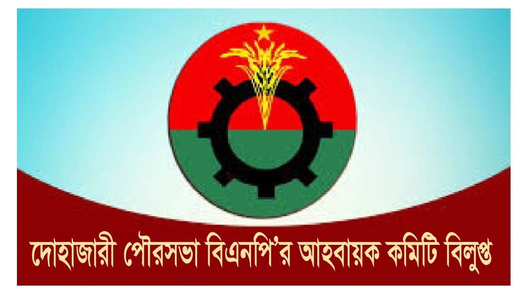বাংলাদেশ জাতীয়তাবাদী দল (বিএনপি) চট্টগ্রাম দক্ষিণ জেলার আওতাধীন চন্দনাইশ উপজেলার দোহাজারী পৌরসভা বিএনপি’র ২০ সদস্য বিশিষ্ট আহবায়ক কমিটি বিলুপ্ত করা হয়েছে। মঙ্গলবার (১৮ জুলাই) চট্টগ্রাম দক্ষিণ জেলা বিএনপি’র আহবায়ক আবু সুফিয়ান ও সিনিয়র যুগ্ম আহবায়ক এনামুল হক এনাম স্বাক্ষরিত এক প্রেস বিজ্ঞপ্তির মাধ্যমে কমিটি বিলুপ্তির বিষয়টি নিশ্চিত করা হয়।