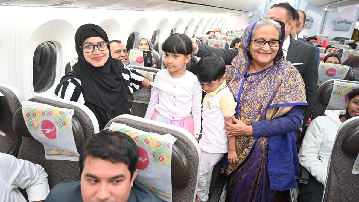 সুইজারল্যান্ডের জেনেভা থেকে দেশে ফেরার পথে ফ্লাইটের যাত্রীরা বিস্মিত ও আনন্দিত হয়ে ওঠেন, যখন তারা দেখলেন প্রধানমন্ত্রী শেখ হাসিনা নিজেই তাদের সঙ্গে দেখা করছেন। তিনি একের পর এক তাদের আসনে আসছেন ও বিমানের আরোহীদের সঙ্গে কুশল বিনিময় করছেন।