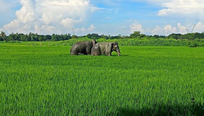 আনোয়ারায় ফসলের মাঠে বন্যহাতির চলাচল