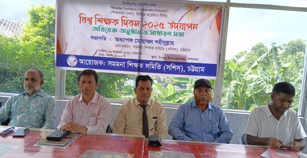 নিউজ ডেস্ক: “শিক্ষকতা পেশা: মিলিত প্রচেষ্টার দীপ্তি”— এই প্রতিপাদ্যকে সামনে রেখে সমমনা শিক্ষক সমিতি (সশিস), চট্টগ্রাম-এর আয়োজনে বিশ্ব শিক্ষক দিবস ২০২৫ উদযাপন ও অভিষেক অনুষ্ঠান ০৬ অক্টোবর ২০২৫, সোমবার, সকাল আরও পড়ুন