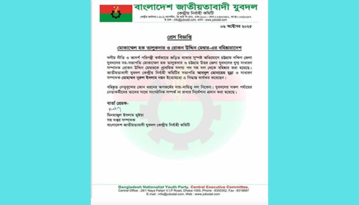 চট্টগ্রামের দুই যুবদল নেতাকে দল থেকে বহিষ্কার