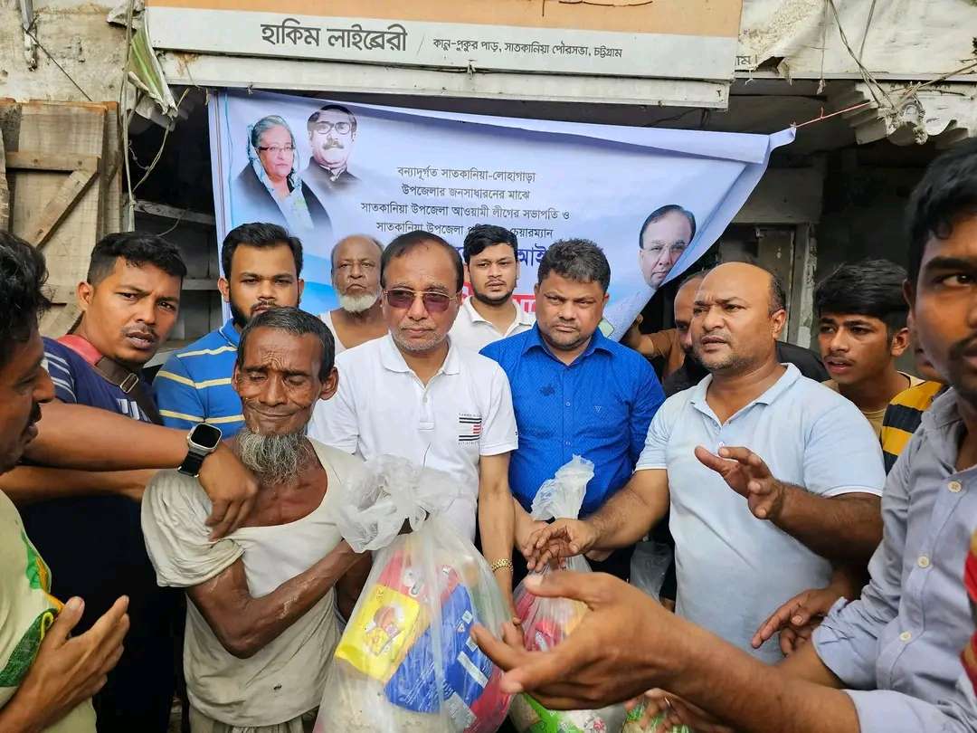 দক্ষিণ চট্টগ্রামের সাতকানিয়া উপজেলায় বন্যাকবলিত এলাকায় ত্রান সহায়তা দিচ্ছেন উপজেলা পরিষদের চেয়ারম্যান ও উপজেলা আওয়ামী লীগের সভাপতি এম এ মোতালেব। এসময় তিনি বলেন, দুর্যোগের সময় সরকারি বরাদ্দের পাশাপাশি ব্যক্তিগত পর্যায়ে সাচ্ছল ব্যক্তিদের এগিয়ে আসা জরুরী। স্মরণকালের রেকর্ড ভাঙ্গা ক্ষয়ক্ষতির পরিমান অনেক, তবে এই মুহূর্তে সবাইকে ত্রাণ ও উদ্ধার কার্যক্রম ব্যতীত কোন উপায় নাই। অতি বৃষ্টি, পাহাড়ি ঢল ও উজান থেকে নেমে পানিতে সৃষ্ট আকস্মিক বন্যার ক্ষয়- ক্ষতি পুষিয়ে উঠতে কিছুটা সময় লাগবে। দুর্গত মানুষের কল্যাণে সরকারের পাশাপাশি সমাজের বিত্তবানদেরও এগিয়ে আসা দরকার।